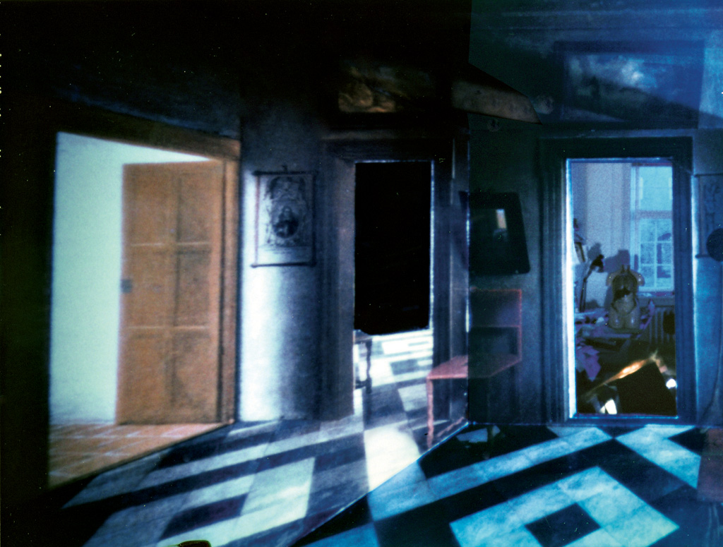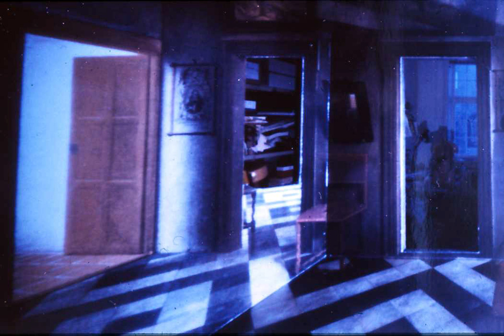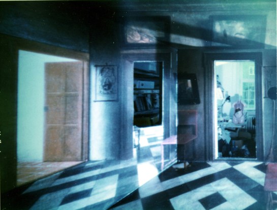 The first attempts with 500 watt flash lamps used at their lowest power (for the fastest flash) were hopeful (above) but not fast enough to resolve the paint as a crisp frozen image. This would be solved by using a powerful battery powered flash in the subsequent generations. The significant discovery was that making these photographs made a hopeful change in my engagement with the work. When making a drawing I set the aim of the catapult in the hope of the paint travelling in a certain trajectory, and perhaps colliding with one of the drawing pieces in particular. With the photograph, which is timed manually so that even with my most developed method I am only catching the paint in the photograph every two or three throws, I have more than one anticipation in making the throw of paint.