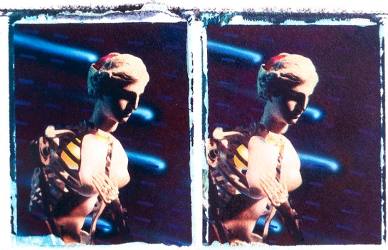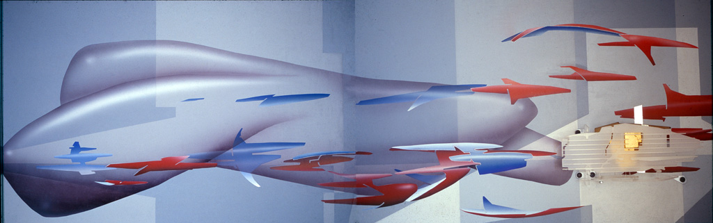 This is a stereoscopic pair, so if you go cross-eyed you should be able to resolve the scene in 3D, which makes it much clearer. If you are having difficulty resolving it make the image smaller on the screen.