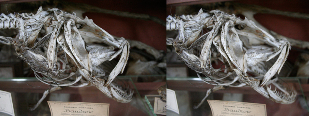 A staircase model from the Musée des Arts et Métiers in Paris in stereo. Usual procedure for these – go cross-eyed so that you get three images. Concentrate on the middle one so that the two images become resolved on top of each other. Try to relax and the image depth will improve.