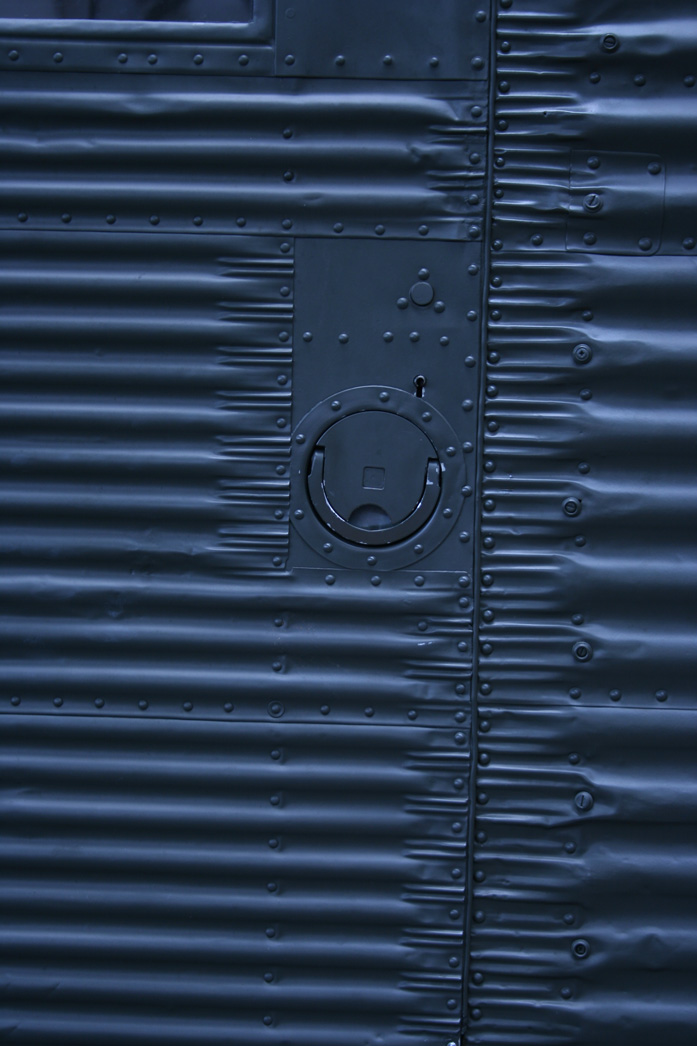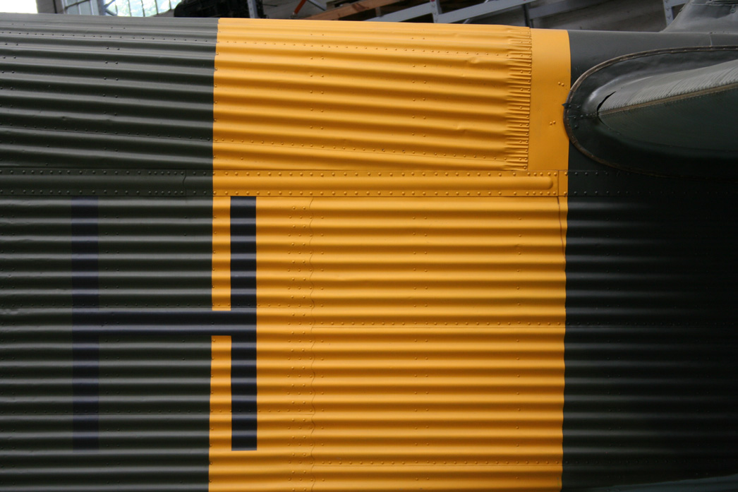 One of the local cladding materials where I have been living is corrugated steel, borrowed from the agricultural industry that uses it for a range of storage buildings. Most of these are circular in plan and so only have one sort of joint and no corner detail. When it is used for rectangular buildings it normally has a folded angle cover strip over the corner junction. I was looking at some German aeroplanes, built during the lead up to the second world war, that have corrugated skins to see how else to treat the detailing of such a material (aluminium in the case of the aeroplanes). The use of corrugated skins on aeroplanes seems strange, providing little torsional rigidity and a large surface area for drag, but the detailing is very careful. One of the examples is from the Western Canada Aviation Museum in Winnipeg and the other from Duxford near Cambridge in the UK. I have a few more pictures, including some interior shots, so I may post some more another day. The crimped edge seems to provide a much greater range of joint possibilities. I was thinking of using corrugated steel for the cladding of a house I was working on and looked at these ‘planes to help work out a range of scale when detailing the skin.