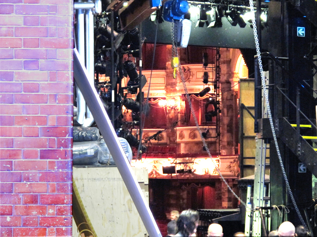 Following the theatrical theme from the previous post, here are a couple of pictures taken in Bedfordbury, behind St. Martins Lane, of the stage door to the English National Opera at the London Coliseum. As with a number of London theatres the tightness of the site means that loading bays for scenery reveal the stage directly to the street, circumnavigating the elaborate and extended progression the audience normally encounters on their way to the auditorium. The tall thin doors of the Cambridge Theatre provide a similarly abrupt connection, as did the old arrangement at the Royal Opera House. It is always a great pleasure to find one of these doors open.