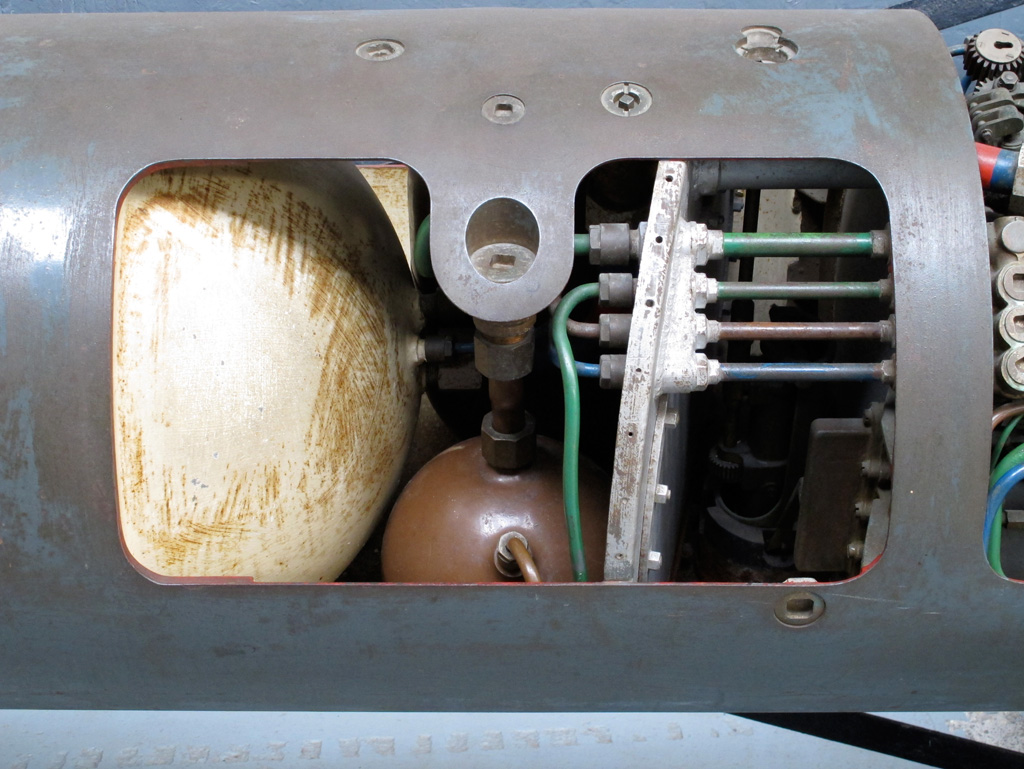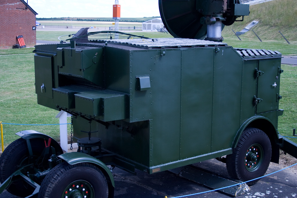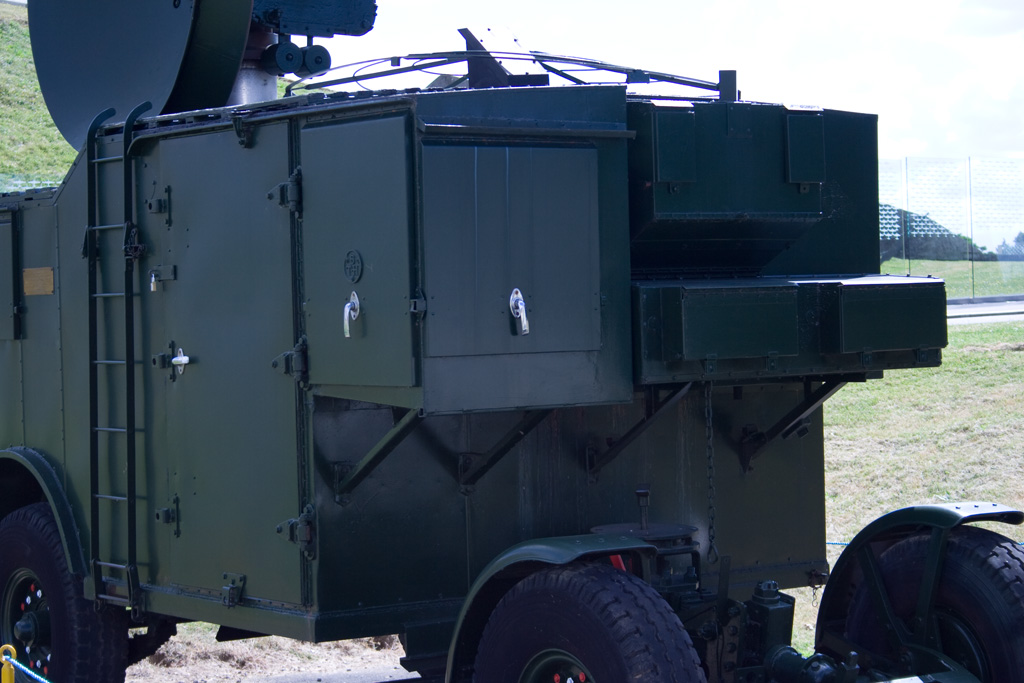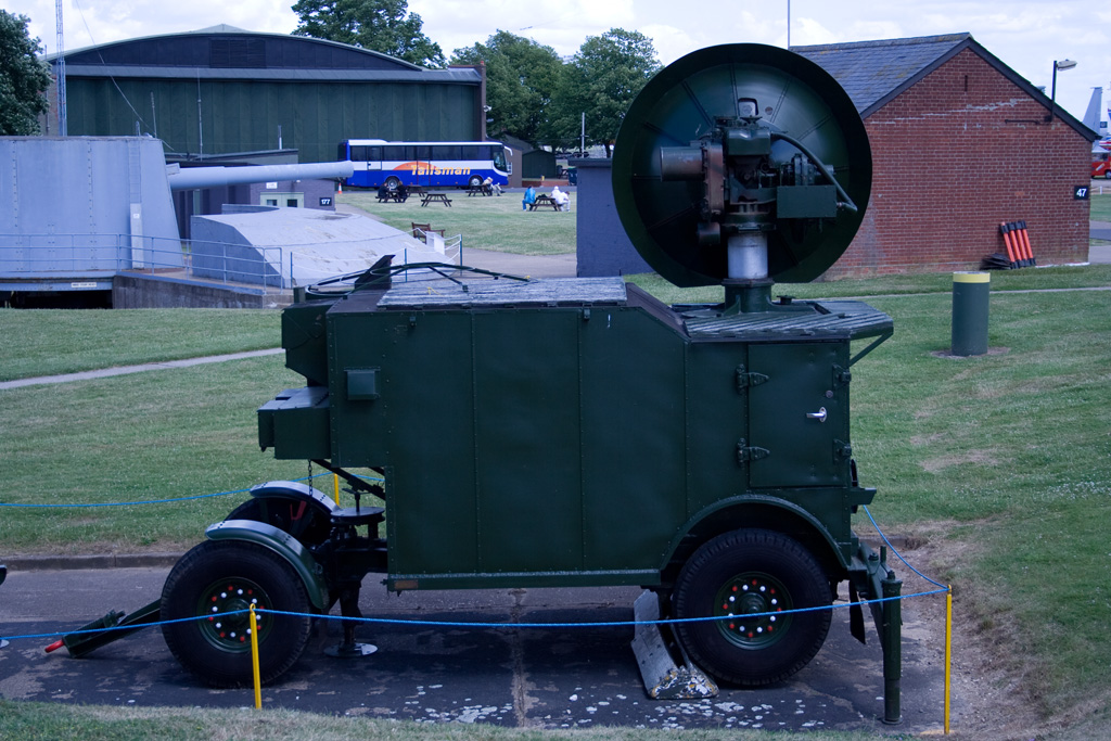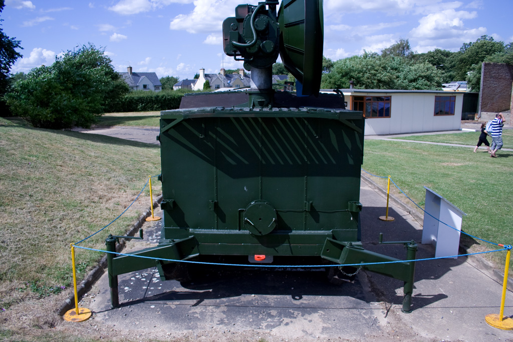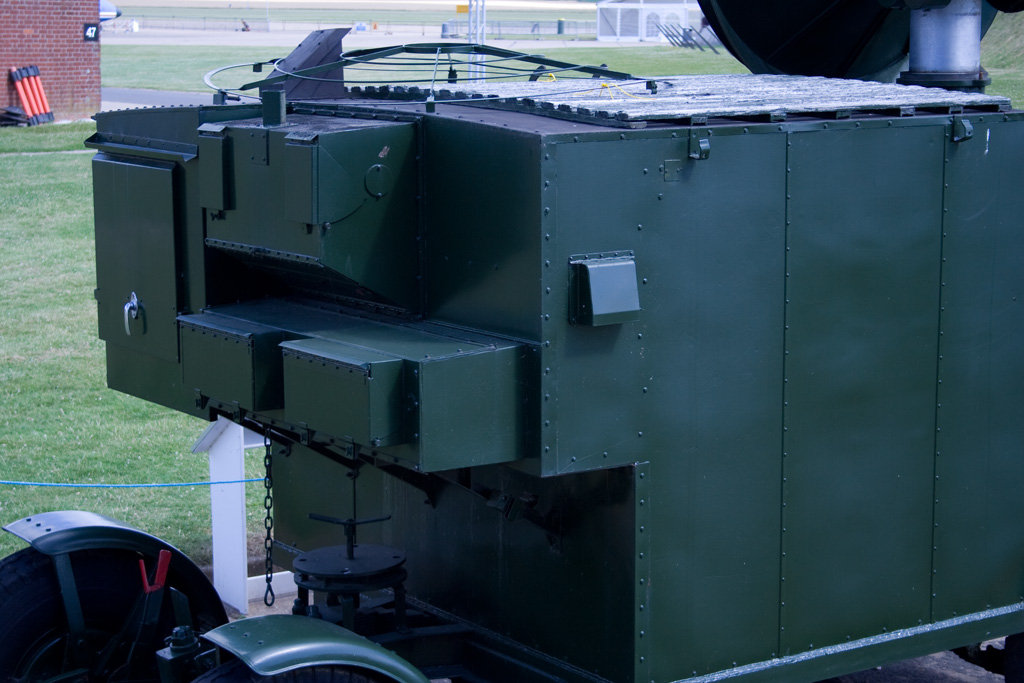 In the middle of this radar trailer (above) is a section that holds the people who operate it. Either side are the active pieces – the radar dish and the pieces that control its position etc. on the right and on the left are the viewing screens and controls, which just stick out of the front of the cabin, each piece of program shrink wrapped individually. Some details below. This example is at Duxford.