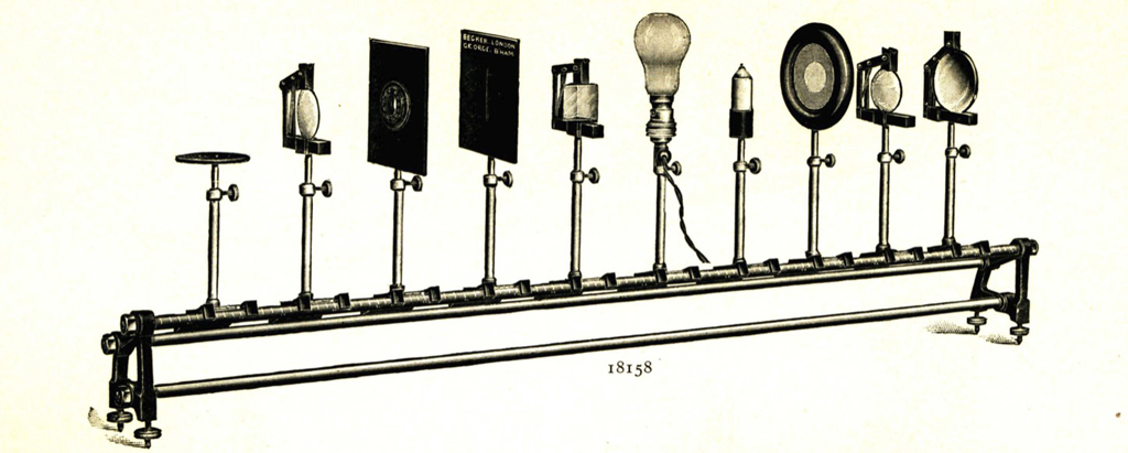 In terms of structuring ideas the optical bench lies between the ubiquity of scaffolding and the specificity of the armatures that hold dinosaur skeletons or the dynamic frames of planetary models (for example). They are content specific but allow that content to be played with.