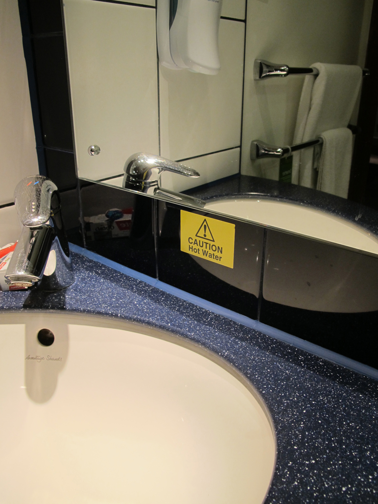 In the new year I returned to the UK after living abroad for thirteen years or so. When I left, lifts (and buildings generally, for that matter) did not talk to you and there were not notices on every piece of wall, ground or implement that has any remote chance of harm, however unlikely. I was in Edinburgh this weekend for the Plenitude and Emptiness conference (very enjoyable) and was put up in a hotel where there were warning signs on the taps that they contained hot water! Then the lift would tell you not only which floor you were in but gave a running commentary on the status of the doors. I wonder what foreigners make of the British, needing their every move to be explained to them? Of course, I understand why this has happened, but given that these signs or instructions have become ubiquitous I was also wondering what other instructions might be placed on architecture to make another sense of it, a little in the way that written instructions adorn military ‘planes. (See earlier posts on Written Instructions).