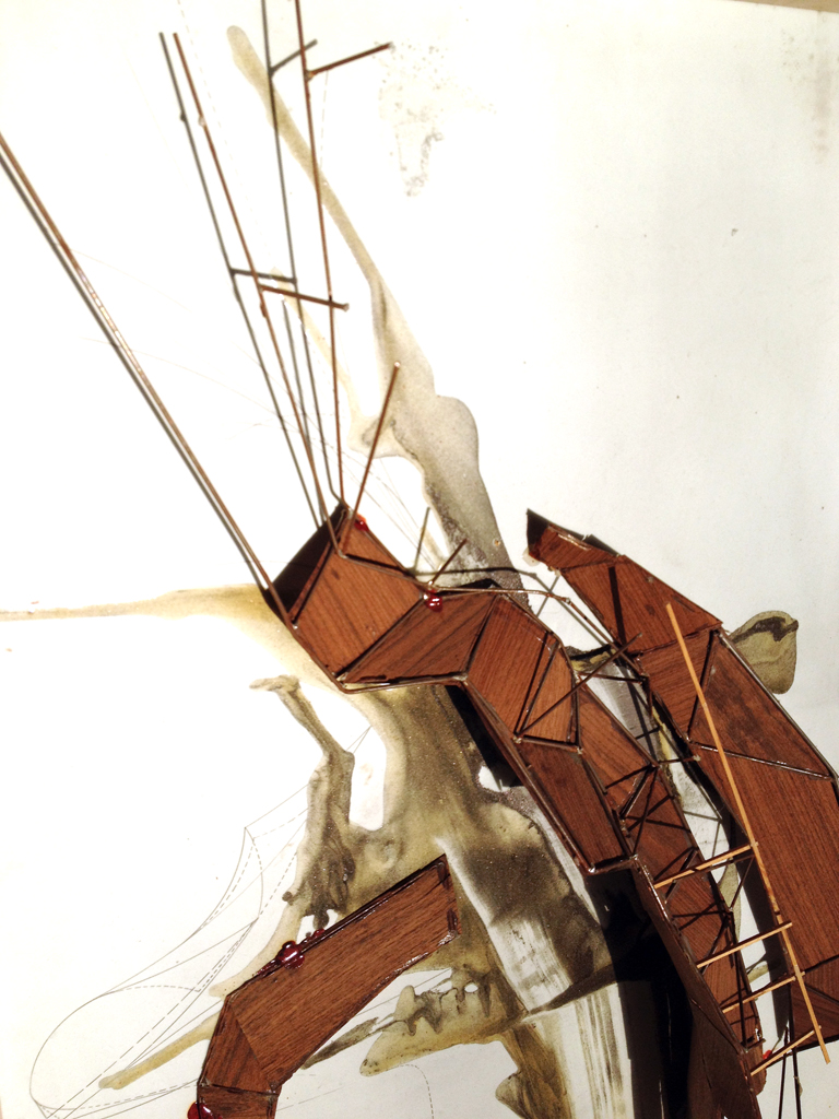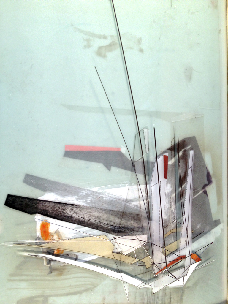 Some drawings by Chris Thurlbourne who has been making these composites that mix drawing and model for a number of years. Chris often collaborates with artist Barnabus Wetton, and builds up layers of drawing on paper and with steel wire, adding surface of colour on the paper and other materials on the parts that become model. I will see if I can post a few more another time.