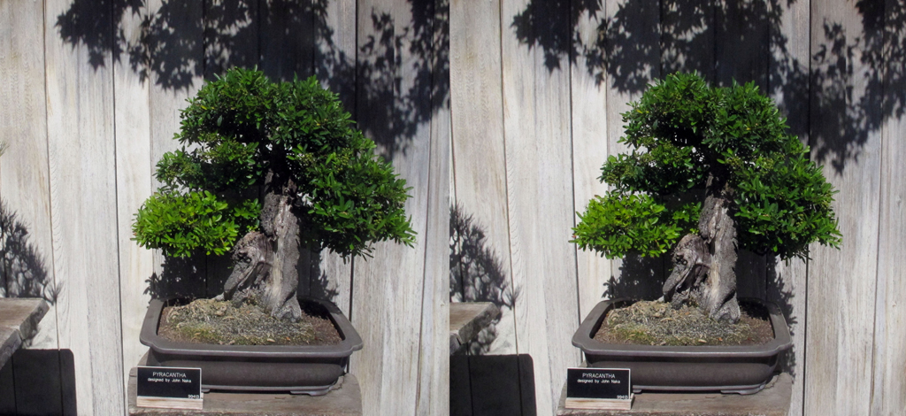 Some stereoscopic views of the Japanese House at Huntingdon Gardens. To view, go cross eyed until the two images register over each other (vertically as well as horizontally). Concentrate on a fairly central and prominent feature to help you achieve this. When the image clicks into place, try to relax and hold it for a while – the stereoscopic depth should develop as you do so. If you are having difficulty, try making the images smaller. A couple of them have quite a pleasing depth when seen stereoscopically so give it a go.