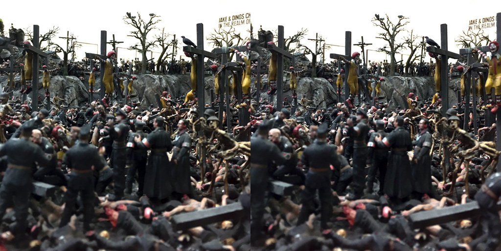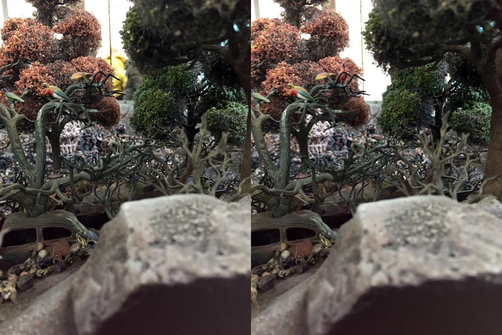 To view in stereo, go cross-eyed so that the two images register exactly over each other. You will see three images – concentrate on the middle one until you get a three-dimensional image. Try to relax, and the image will find its full depth.