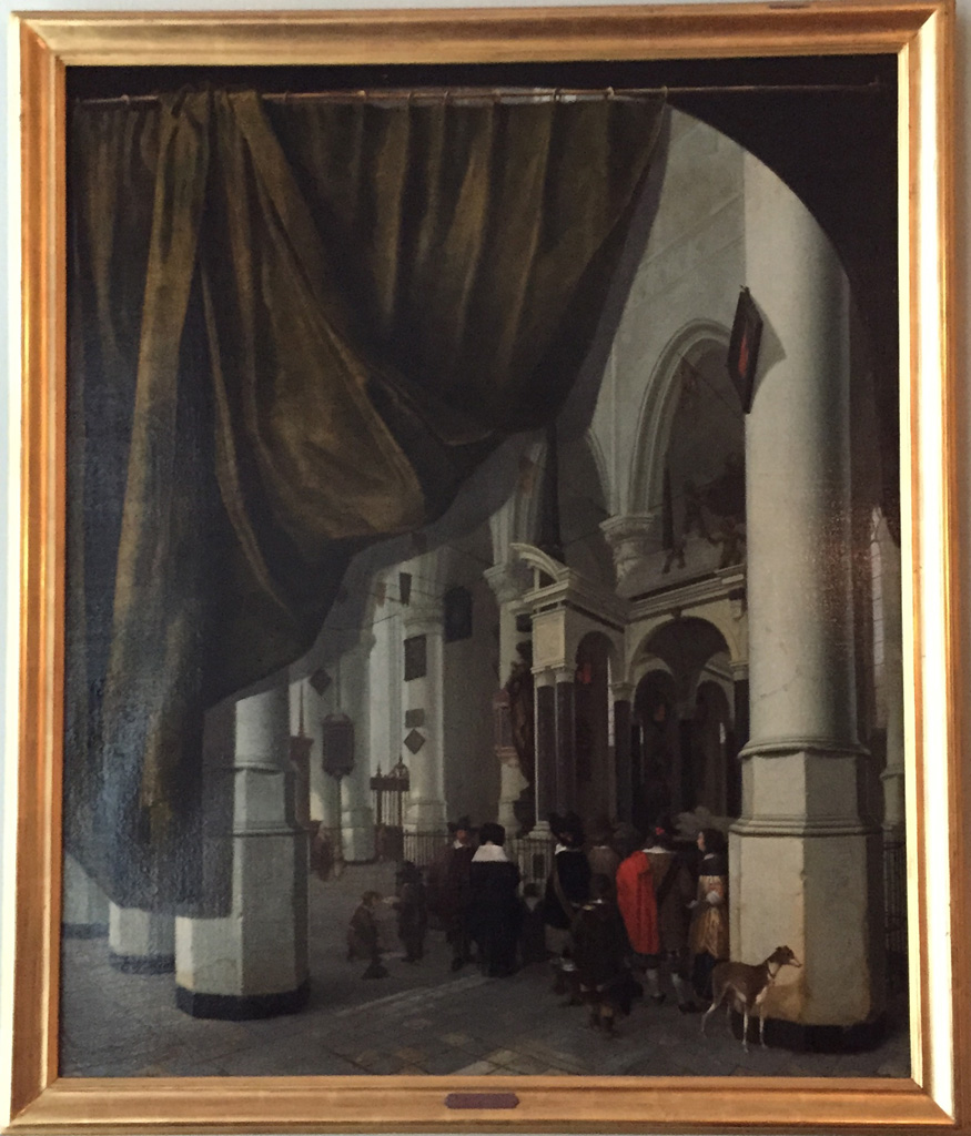 This church interior in Davids Samling in Copenhagen has a curtain in the foreground that at first appears as if it might be part of the main view, but then you see that it has a shadow on the surface of the canvas rather than on the pictorial content (and depth), a little like the (absent) readymades in Duchamp’s Tu M’ (see here) – the curtain is clearly meant to be a trompe-l’oeil covering for the painting. I quite like the way it can be read either way.