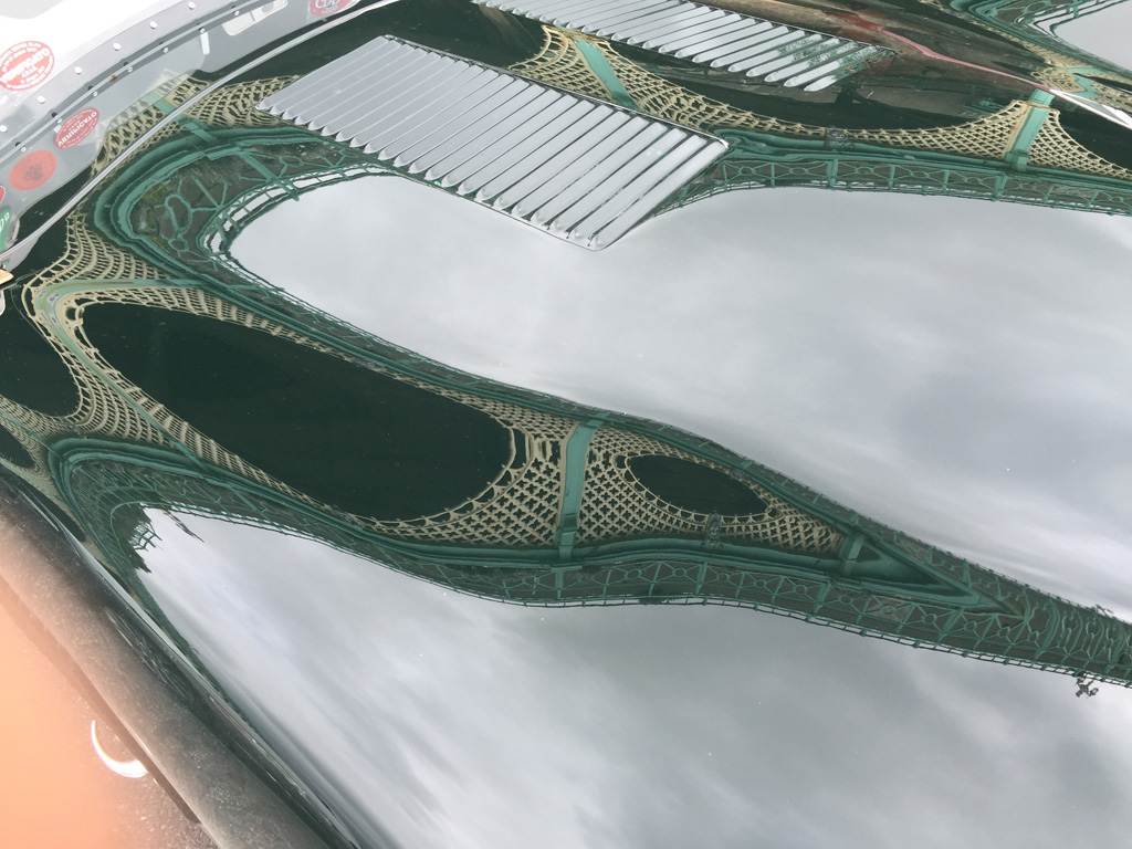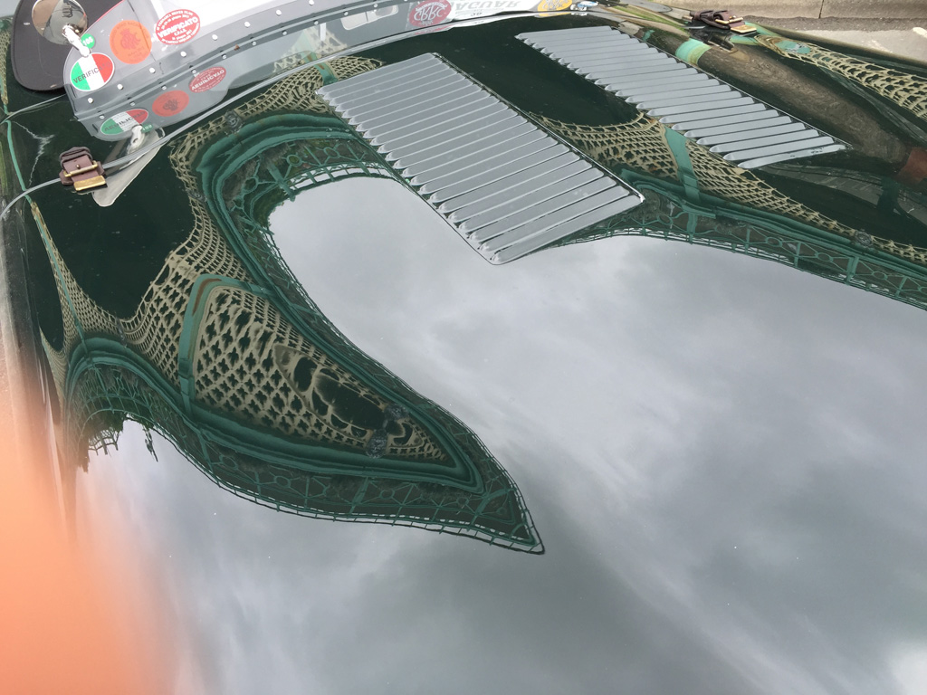 Folding Picture Planes – Hoods/ Bonnets April 26, 2015Uncategorized Leave a comment It is Jaguar day on Madeira Drive and the long and curvaceous bonnets of ‘C’ and ‘E’ types and XK 120s and 150s provide distorted reflections of the cast iron promenade above.