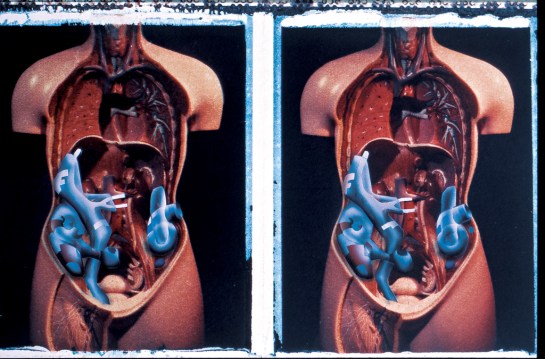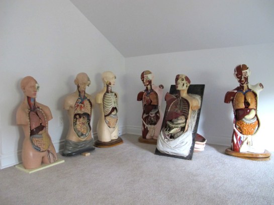 The figure to make these drawings was cast in a mould for an écorchémodel that i adapted with an abdominal and chest void and added organs from a plastic model. For the next generation body project I borrowed an anatomical torso from University College Hospital (I was teaching at the Bartlett, UCL, at the time) and for for the third project I bought my own anatomical torso. When I took this headless, legless, armless body through Stanstead Airport the human torso appeared on the X-ray screen at large luggage security but the guard did not flinch, presumably looking for certain colours rather than the figure.