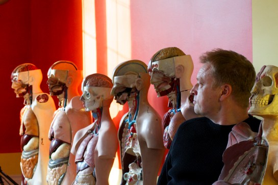 Medical models appear so much more critical than their architectural equivalent. The section lines are content driven and understand the general symmetry of the body, so they tease your imagination to carry what exists at one layer on one side over to that other, where greater depths are then revealed. I purchased my first one (that I keep at work) when I moved to Copenhagen. In London I would borrow one from the anatomical lab at UCH, who were very helpful as I was teaching at the Bartlett, also part of UCL. In Copenhagen the Academy had no affiliations with medical schools, so I would borrow the Academy’s van and drive all my equipment to the alcohol dependency unit of a nearby hospital who were happy for me to work with it there but not to borrow it. As there were so many knowing looks by people seeing the school of architecture van outside the alcohol dependency clinic, and also the inconvenience of having to move all my lights and large format camera, I bought my own figure. I have not done any body drawings for a while, pertly due to the demise of Polaroid film which I used to use to make transfers, but with some distance it would be good to rethink the project some time, with one of the other figures.