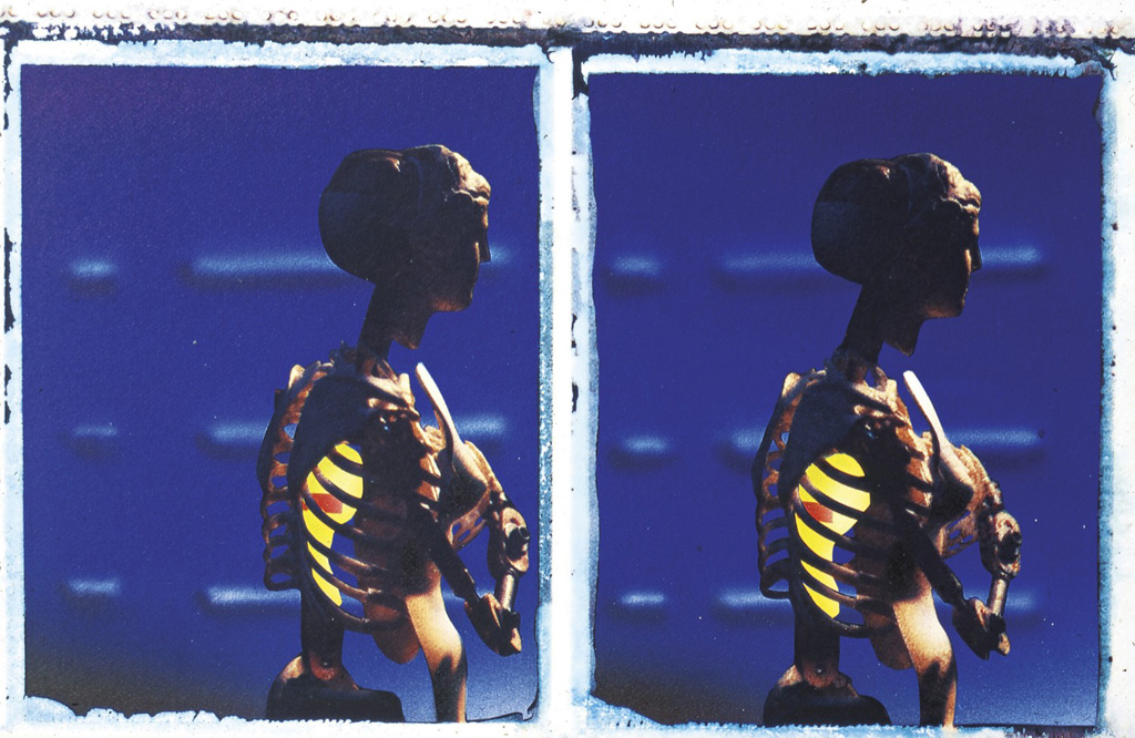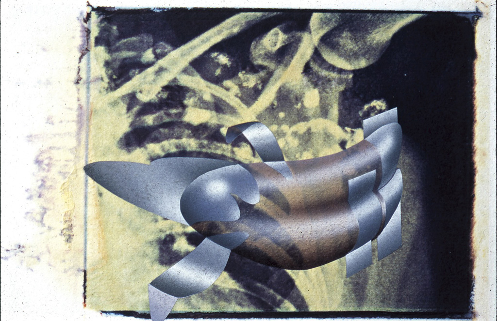 A very old drawing i just found from when i started working with Polaroid Transfers. The original image is from a book on mannequins. This is from around the time I started the first body projects and was wondering if all the pieces would be inside or outside the body. The airbrushing is quite crude, with very little reflected colour in the shadows. This one is made from 669 Polaroid – for the body projects I used type 59. It is a pity the material is not still made or that the Impossible Project have not revived the peel apart films.