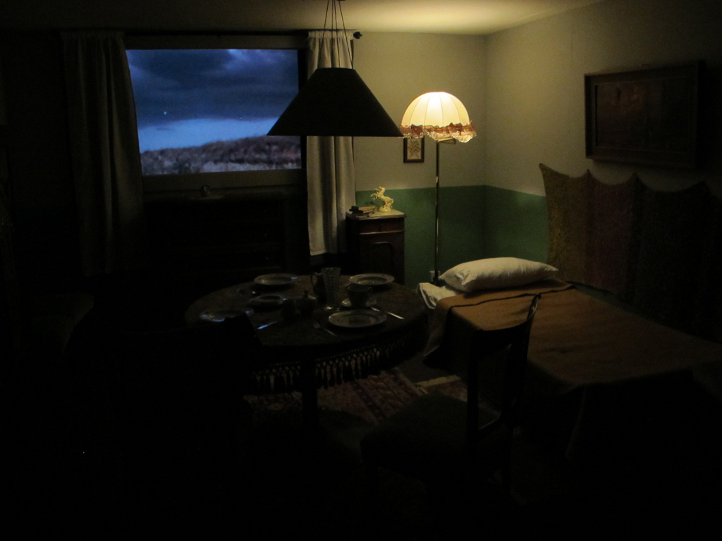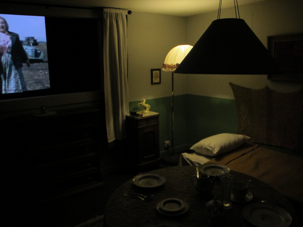 In the deepest bowels under the University of Westminster on the Marylebone Road is Ilya and Emilia Kabakov’ “The Happiest Man”. The space is largely filled with old cinema seats. The large screen shows segments of rousing Soviet films of rural progress from several decades cut fairly seamlessly together. To one side of the seats (see top picture) is a large box, which contains a room with an atmosphere resonant with several of their previous installations. You can see the film through the window. As with much of their other work, the construction provokes delightfully strange and conflicting thoughts. Well worth a visit if you in London, open until 21st April.