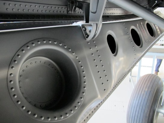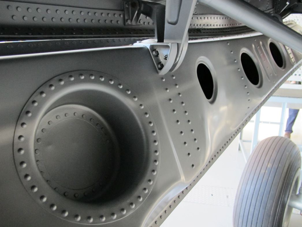 The wheel hatch doors have pressed inner skins that have a depth to provide strength. As they are mostly out of the wind (except for take off and landing) they are fixed with domed rivet heads. The inner skins are connected to the outer surface at the perimeter and some dished sections to make connections across the centre of the hatch doors (see below).