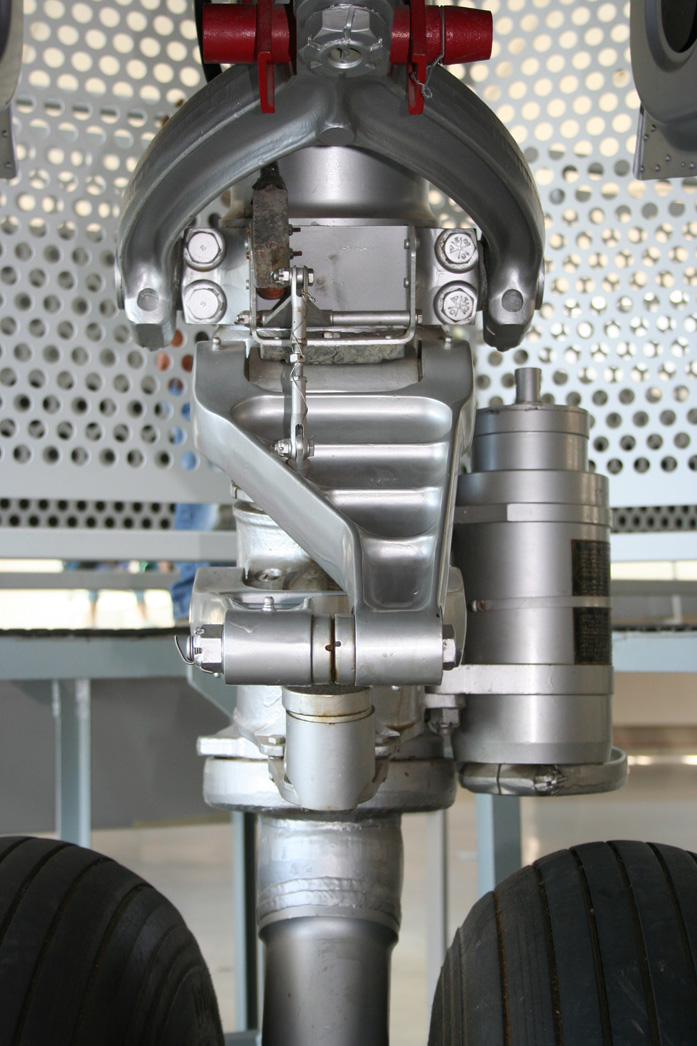 The structural depth of these two skins protrudes into the space occupied by the landing gear when the wheels are stowed during flight. To overcome this packaging problem there are dimples pressed into the inner skin to accept the front