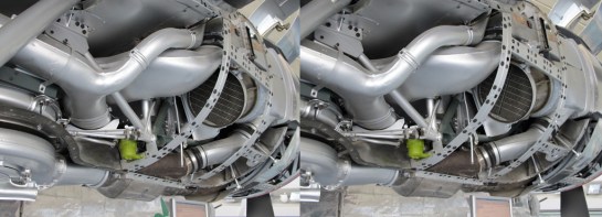 Three stereoscopic views of the packaging of a B-24’s Pratt and Whitney R-1830 turbo-supercharged engines. Not quite as tight as the organs in our torso, but beautifully packaged none the less. Anyone who has seen my Springer book may remember the photograph on page 38 that shows the B24 being drawn at the Ford Willow Run plant (see here), with a visceral relationship between the draftsmen and the drawing.