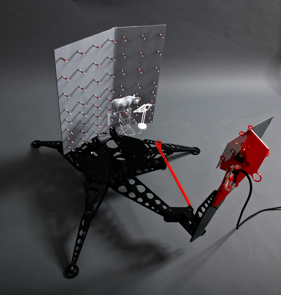 I have not posted any new work for a while, so here is Instrument Nine in progress. It is a development of Instrument Six, projecting paradoxical shadows that float in mid air. A few more complications in this one and using different technologies.