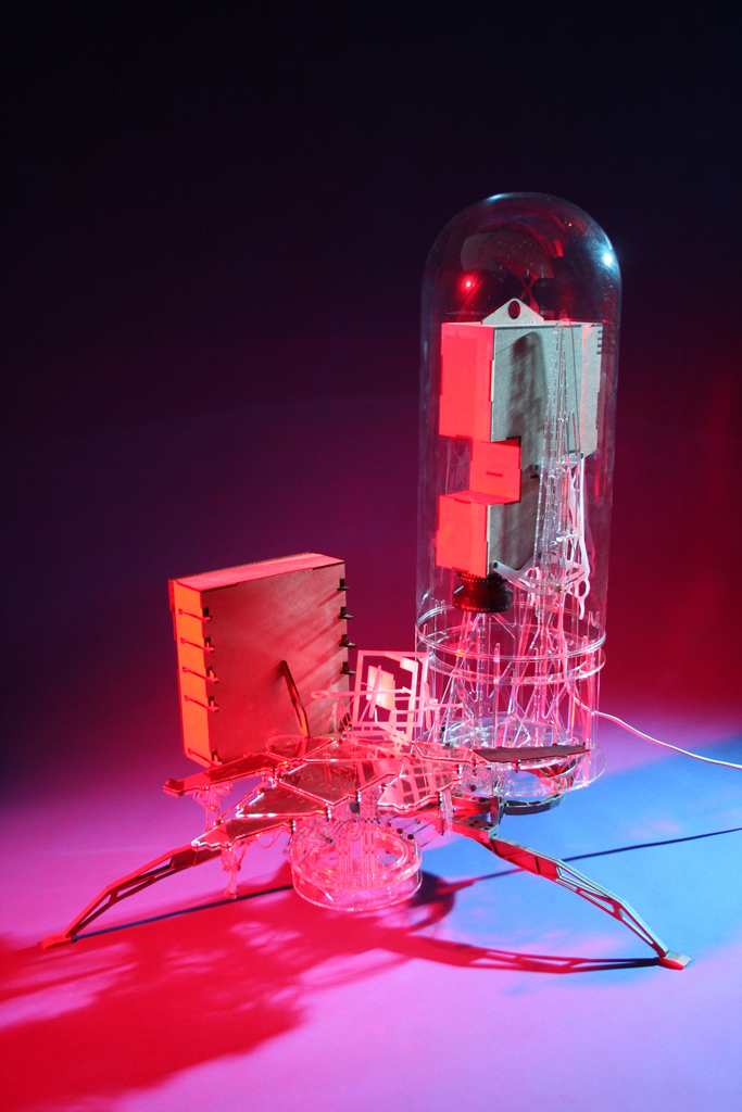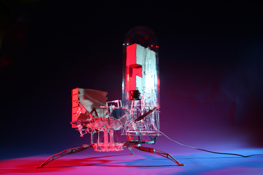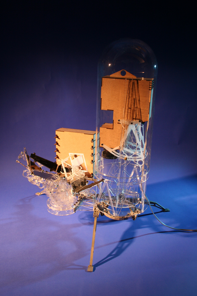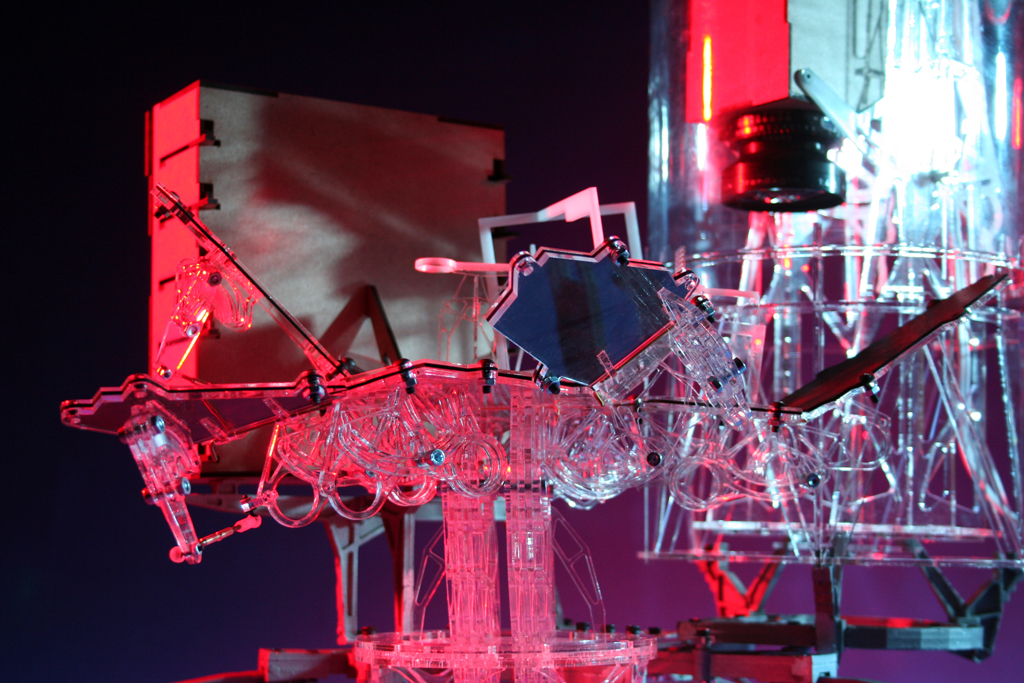 Flying paint (thrown by an adjacent instrument) engaging with Perry Kulper’s drawing in one of our projects for Pamphlet 34. Notice the different behaviour of the paint when it hist his drawing pieces (the three-dimensional elements in front of the drawing).