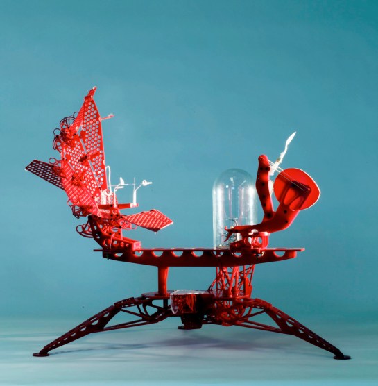 The Instrument Seven drawing pieces are also developed to be more robust and larger targets for the paint. We are no longer discussing the Bird Automata test track in this instrument – the drawing pieces shown here are a media test to push some of the thoughts about what the drawing pieces could achieve. There is a main wooden piece that is protected by a number of slatted screens. as the paint penetrates the screens to cover the wooden piece the slats become more opaque to the flying paint.