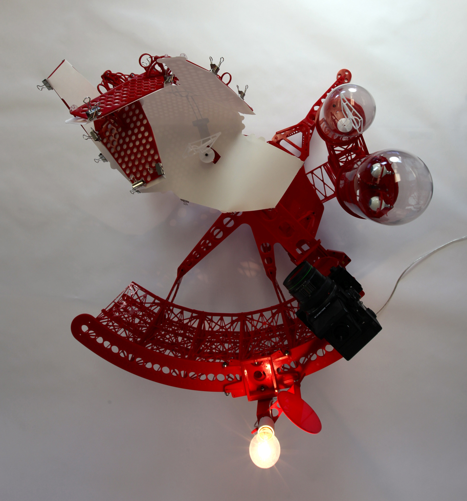 I am back working on the paradoxical shadows. Instrument Six (below) proved that I could make a floating shadow (hovering in mid air and detached from the surface that it should by rights land upon), both photographically and as a direct experience. For the latter, the candles worked very beautifully but require a very dark space to work in and have practical limitations, so I am making new instruments with electric light bulbs instead. The new instruments will test a host of possibilities raised by Instrument Six.